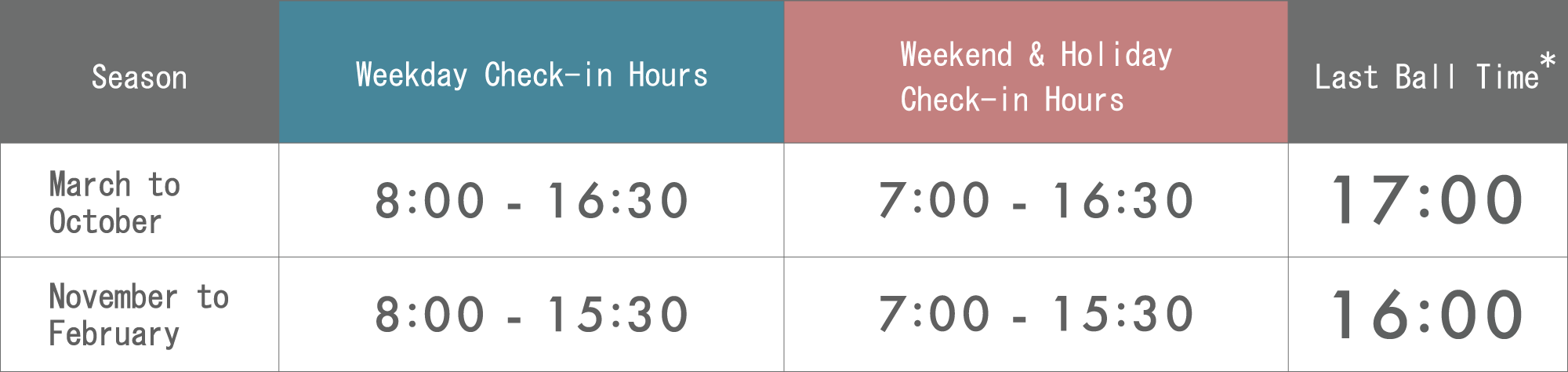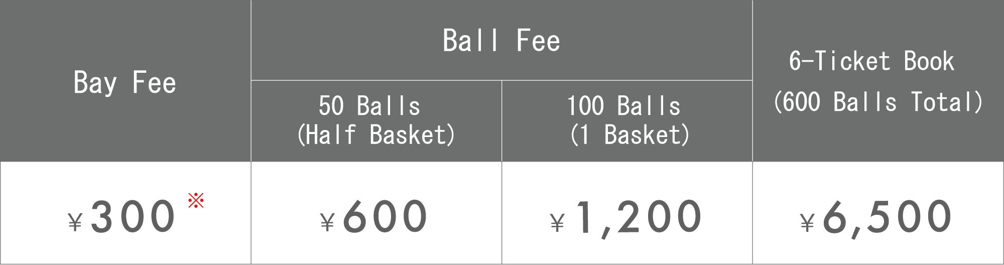※ A bay usage fee of ¥500 is charged at check-in, and ¥200 will be refunded when you finish your practice.